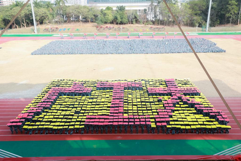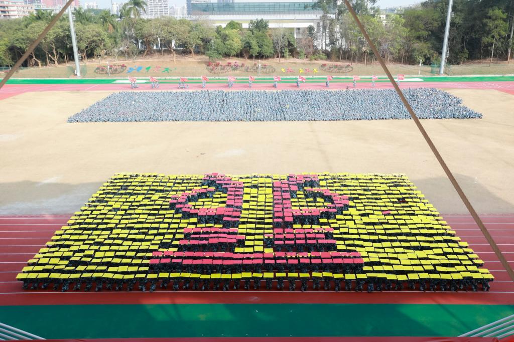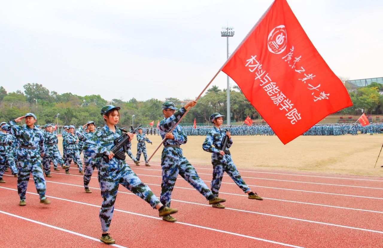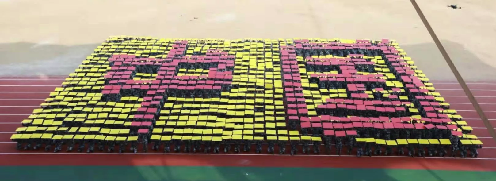 1月28日,广东工业大学的2020级9400余名萌新们经过14天的历练后,举行军训大汇演。9400多名新生组成的汇演方队,动态摆出“不忘初心 牢记使命 只争朝夕 接续奋斗 ” “党徽+1921-2021”“中国精神 中国力量 中国担当”等图样、字样,为中国共产党建党100周年献礼。汇演举行之前,学校举行大学城校区中心田径场修缮完工暨启用仪式。