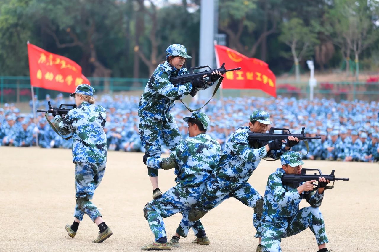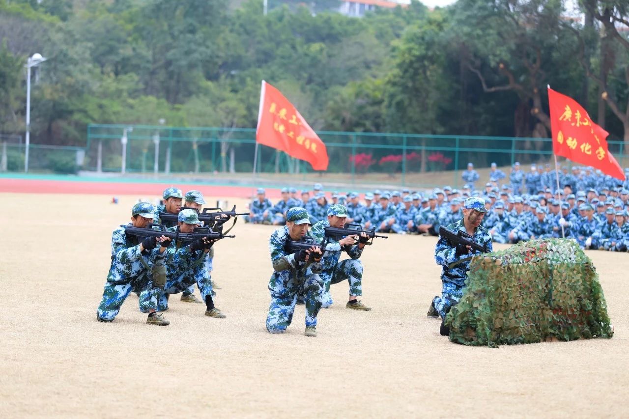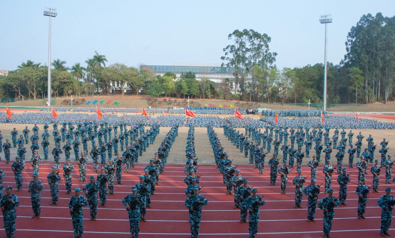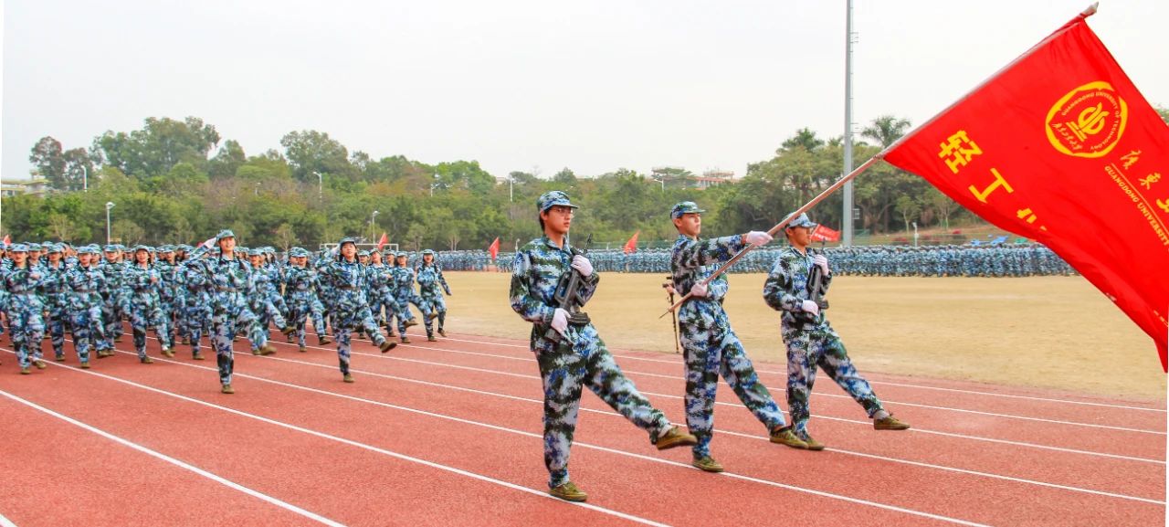 校长邱学青和副校长杜承铭分别在大学城校区和龙洞校区作军训总结讲话。邱学青表示,感谢承训教官以身作则、率先垂范、严格施训。他说,14天军训里,每一个响亮口号、每一次昂首阔步,都见证着同学们的成长与蜕变。他希望同学们砥砺奋斗精神,锤炼过硬本领;坚定理想信念,厚植家国情怀;牢记时代使命,争做时代新人。