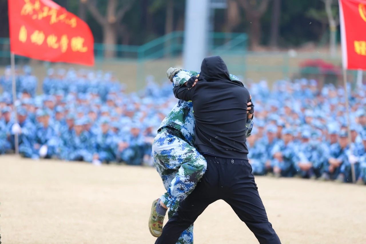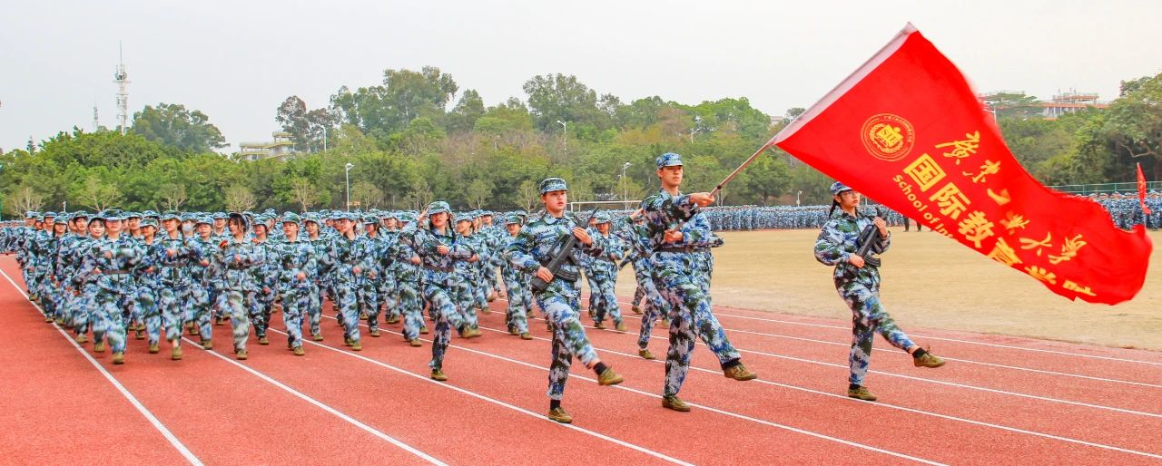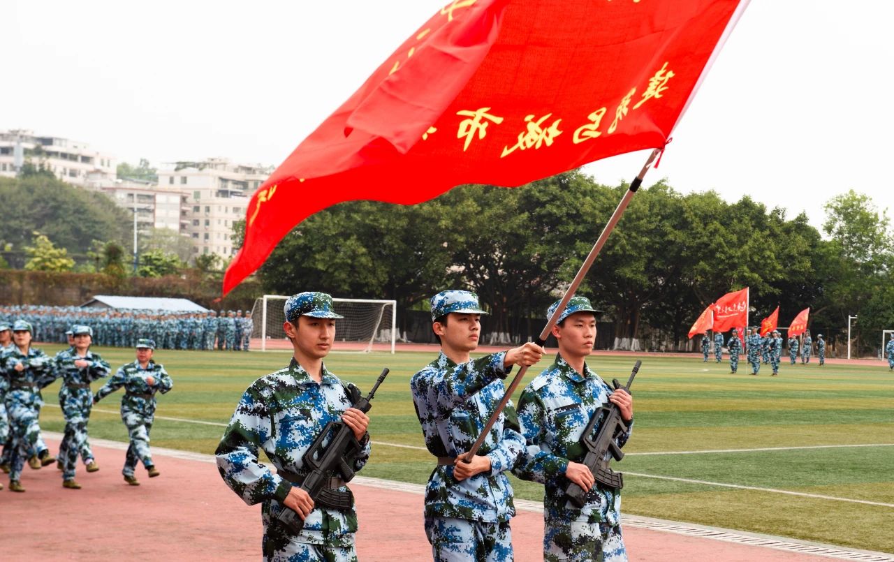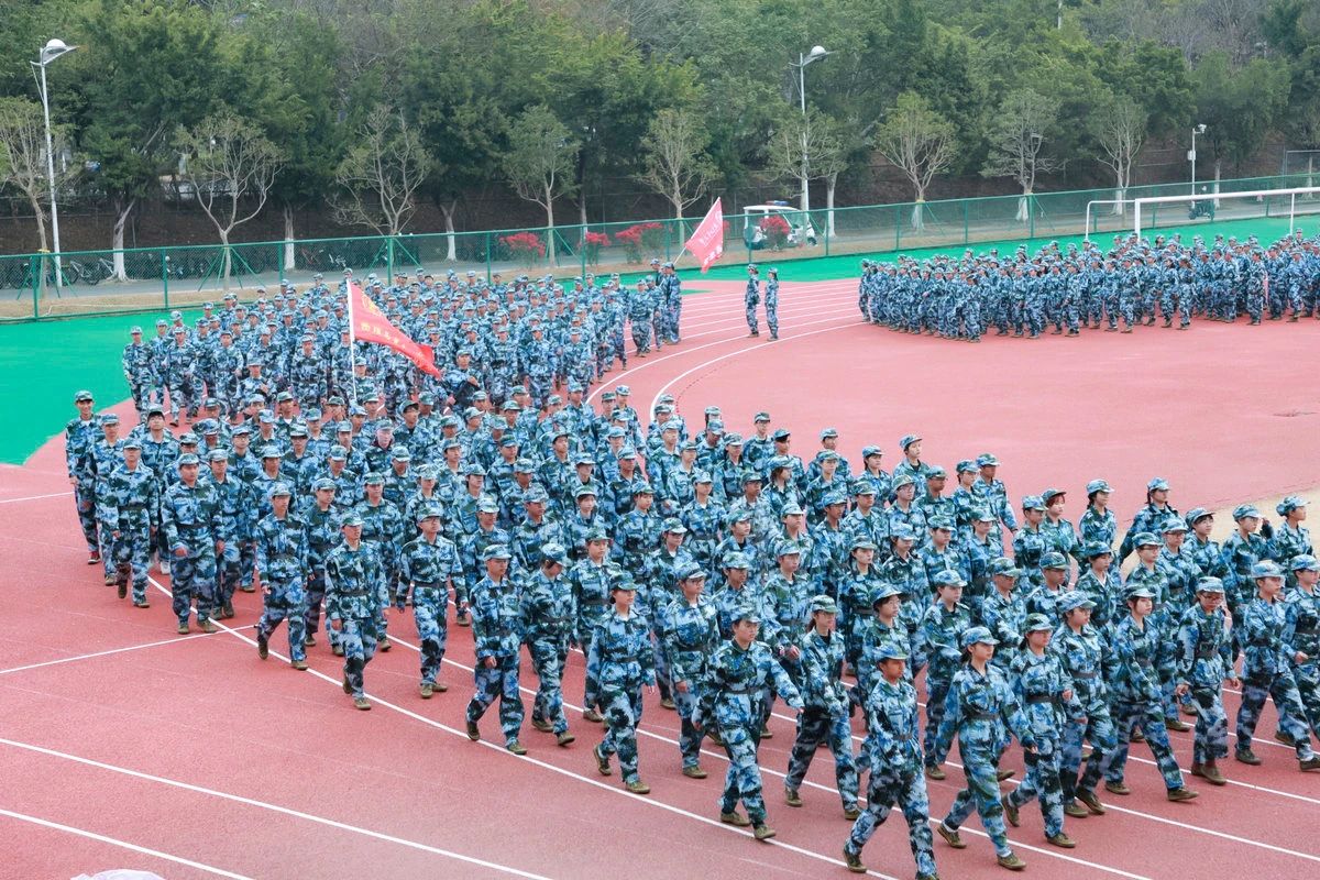 校长邱学青和副校长杜承铭分别在大学城校区和龙洞校区作军训总结讲话。邱学青表示,感谢承训教官以身作则、率先垂范、严格施训。他说,14天军训里,每一个响亮口号、每一次昂首阔步,都见证着同学们的成长与蜕变。他希望同学们砥砺奋斗精神,锤炼过硬本领;坚定理想信念,厚植家国情怀;牢记时代使命,争做时代新人。