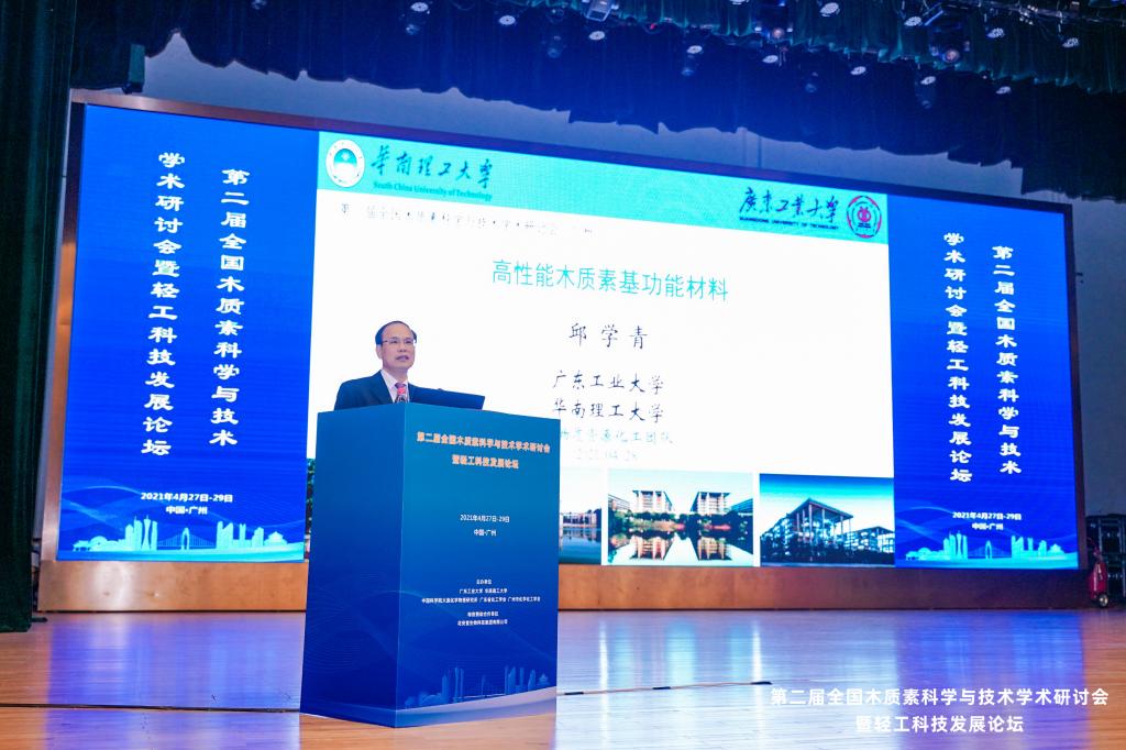 本网讯 4月27-29日,由广东工业大学、华南理工大学、中国科学院大连化学物理研究所、广东省化工学会、广州市化学化工学会共同举办的“第二届全国木质素科学与技术学术研讨会暨轻工科技发展论坛”在广州珠江宾馆隆重召开。会议采用线上线下相结合模式,邀请海内外专家学者交流分享了木质素研究的最新前沿成果。中国科学院副院长张涛院士,中国科学院化学研究所韩布兴院士,广东省科学技术协会党组书记郑庆顺同志,广东工业大学校长、本次大会主席邱学青教授,大会共同主席威斯康星大学-麦迪逊分校潘学军教授、中科院大连化学物理研究所王峰研究员,以及来自中国科学院、中国林科院、清华大学、浙江大学、厦门大学、东南大学、天津大学、四川大学、山东大学、北京林业大学、齐鲁工业大学、大连工业大学等国内外80多个高校和科研院所的近600名代表参加了论坛。相比首届木质素会议,参会单位和人员的数量增加了近3倍,全国木质素研究队伍已迅速成长并壮大。会议由广东工业大学副校长余林主持。