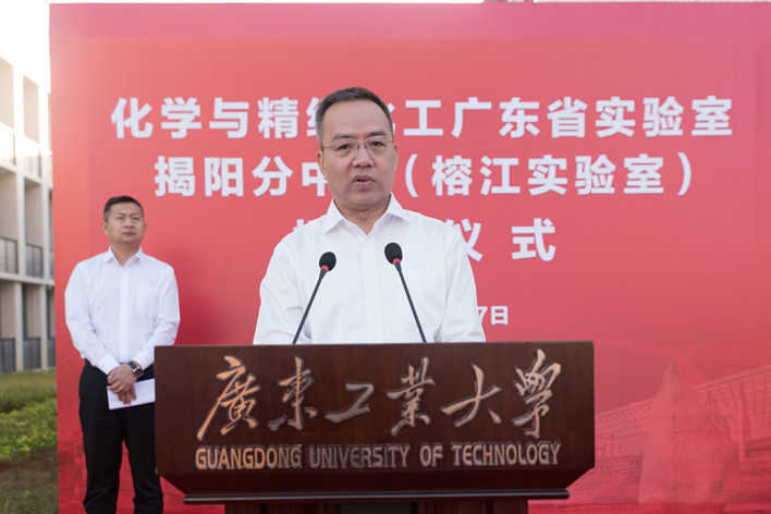 5月17日下午,化学与精细化工广东省实验室揭阳分中心(榕江实验室)揭牌仪式在广东工业大学揭阳校区举行。学校党委副书记、校长邱学青与揭阳市委副书记、市长支光南共同为榕江实验室揭牌并致辞。
