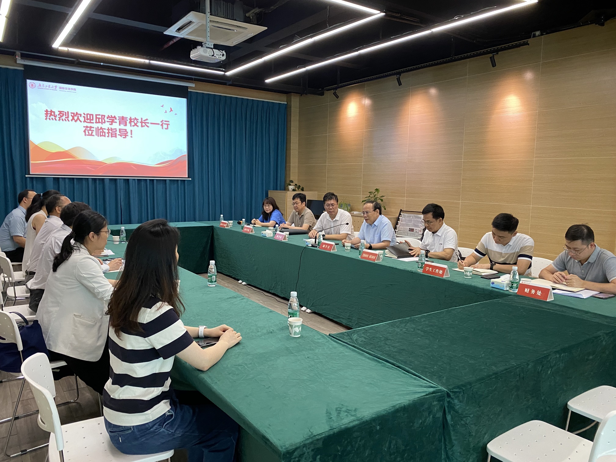邱学青认真听取汇报后,对国际交流学院近年来取得的工作成效给予了充分肯定。他指出,学院是学校高水平大学建设中不可或缺的一环,国际学生在哪里,学校的影响力就到哪里,无论是从服务国家战略还是支撑学校高水平创新型大学建设,都必须把学院办好。他强调,学院要站在主体的高度,发挥主角作用,学校相关部门、单位要协同支持学院发展,积极响应学校第五次党代会和2023年学校工作会议提出的教育对外开放和高质量发展要求,紧紧围绕学校“1+2+3”攀撑计划,务必把学校国际学生教育做大做好。