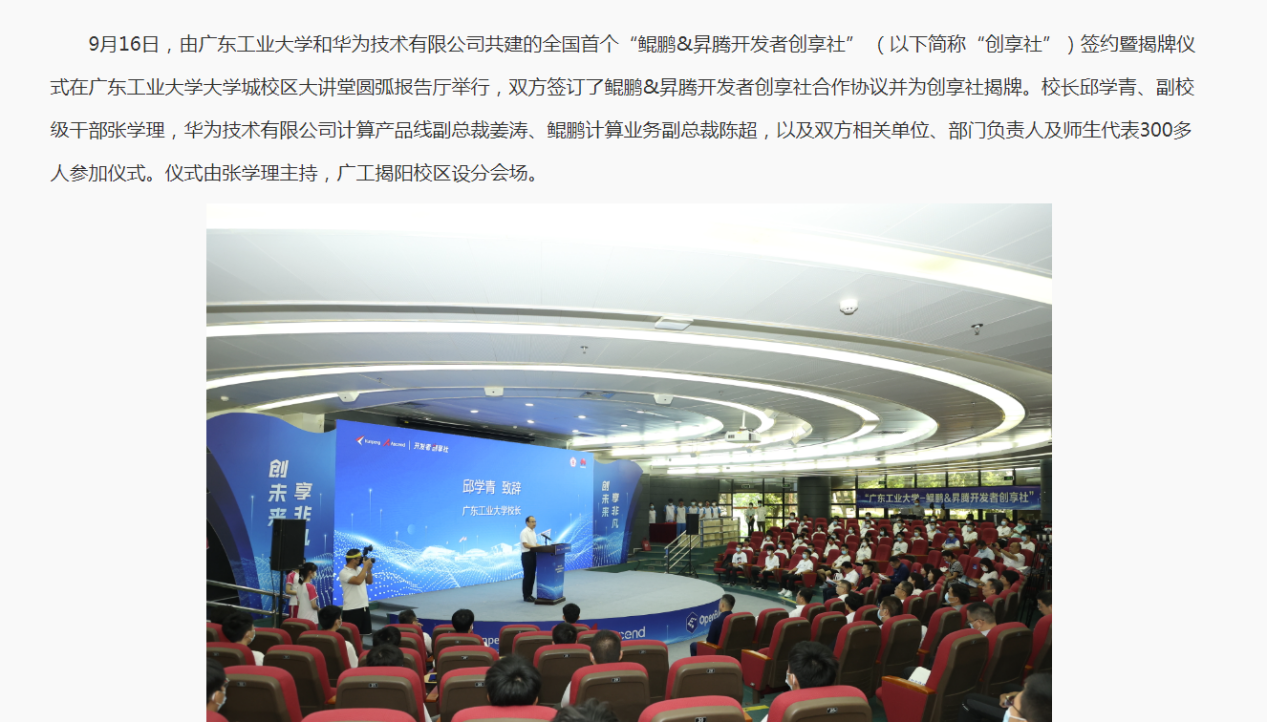 优秀消息类新闻作品《广工与华为共建全国首个“创享社”》