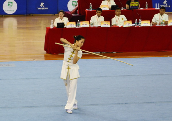 武术比赛5月6-11日在广州中医药大学体育馆举行。我校派出陈旭峰、黄冠喻、陈炜瀚、李逸生、吴筠、何宇芳、罗婧等7名队员参加甲组的比赛。机电工程学院黄冠喻获男子甲组自选枪术第二名及自选长拳第四名,轻工化工学院陈旭峰获男子甲组自选棍术第七名。黄冠喻和计算机学院陈炜瀚均获“体育道德风尚奖”。
