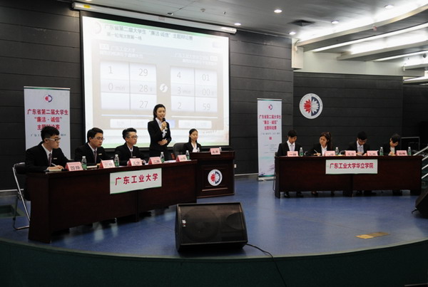 首轮比赛,十支队伍围绕“腐败的根源在于道德失范还是制度缺失”、“维系学术诚信,主要是靠制度还是教育”、“廉洁文化建设重在扬善还是惩恶”、“道德舆论与法律约束对诚信的作用哪个更有效”、“善意的谎言是否有利于诚信”等五个辩题进行了激烈的辩论。整场比赛,你来我往,唇枪舌战,精彩上演,赛出了智慧,赛出了水平,赛出了友谊。最后,华南理工大学、广东工业大学、南方医科大学、广州体育学院、华南理工大学广州学院获得了首轮比赛的胜利。他们将与首轮轮空的三支队伍入围第二轮比赛进行角逐。广东工业大学将承办本赛区为期一个月的初赛赛事。